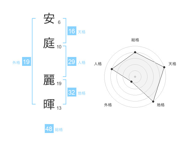 安庭 麗暉さんの総格は48画の4点!