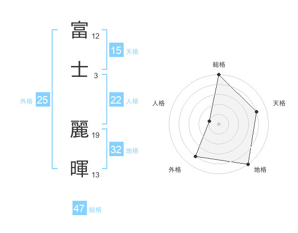 富士 麗暉さんの総格は47画の5点!
