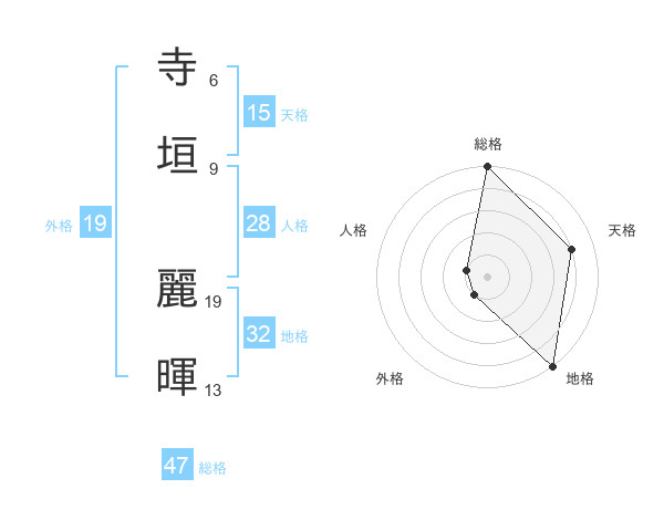 寺垣 麗暉さんを姓名の画数から五運を鑑定