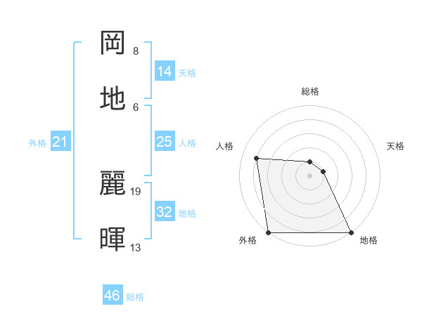 岡地 麗暉さんを姓名の画数から五運を鑑定