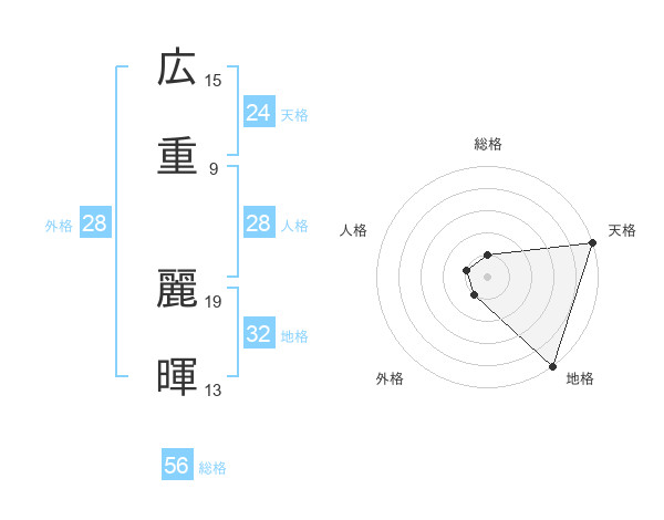 広重 麗暉さんの天格は24画の5点!
