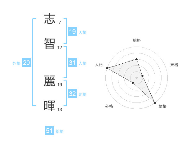 志智 麗暉さんを姓名の画数から五運を鑑定