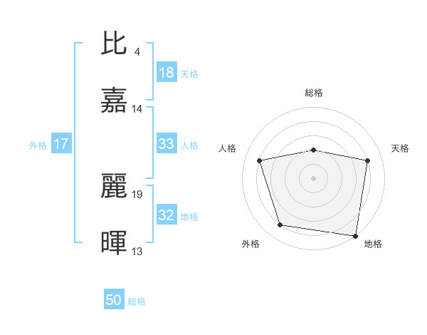 比嘉 麗暉さんを姓名の画数から五運を鑑定