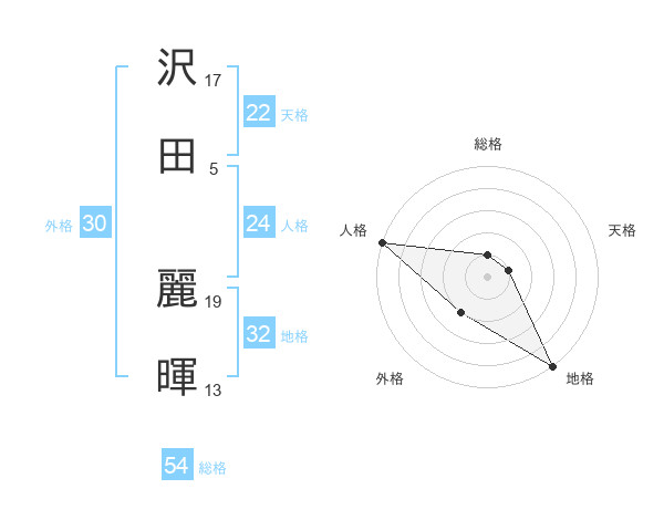 沢田 麗暉さんの天格は22画の1点!