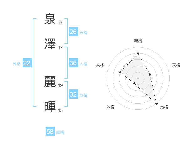 泉澤 麗暉さんの総格は58画の4点!