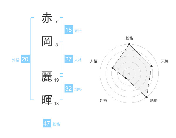 赤岡 麗暉さんを姓名の画数から五運を鑑定
