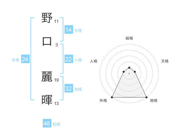 野口 麗暉さんを姓名の画数から五運を鑑定