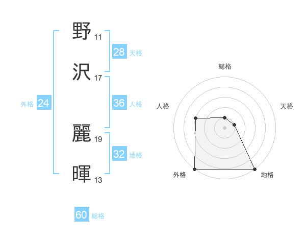 野沢 麗暉さんを姓名の画数から五運を鑑定