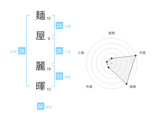 麺屋 麗暉さんを姓名の画数から五運を鑑定