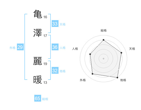 亀澤 麗暖さんの総格は65画の4点!