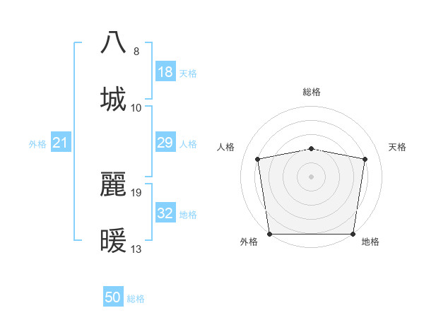八城 麗暖さんを姓名の画数から五運を鑑定