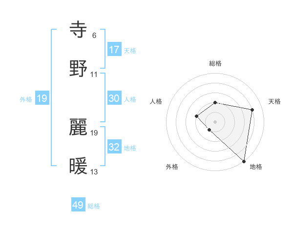 寺野 麗暖さんの天格は17画の4点!