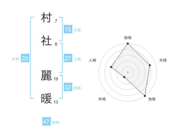 村社 麗暖さんの総格は47画の5点!