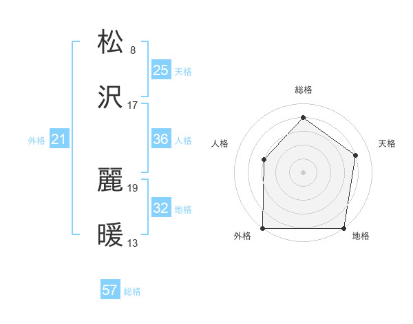 松沢 麗暖さんの外格は21画の5点!