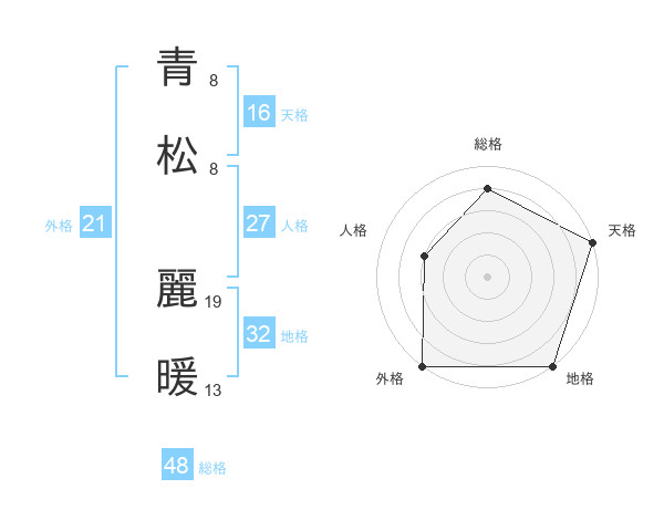 青松 麗暖さんの天格は16画の5点!