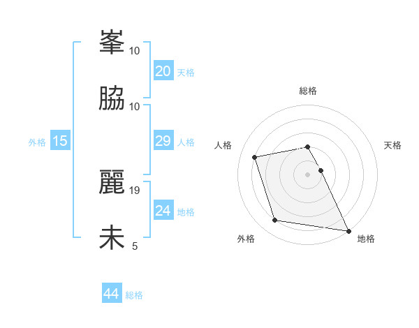 峯脇 麗未さんを姓名の画数から五運を鑑定