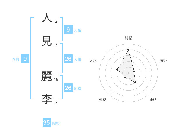 人見 麗李さんの総格は35画の4点!