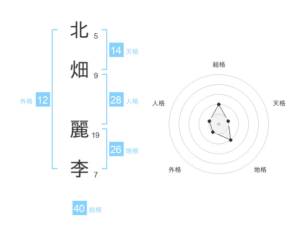 北畑 麗李さんの天格は14画の1点!