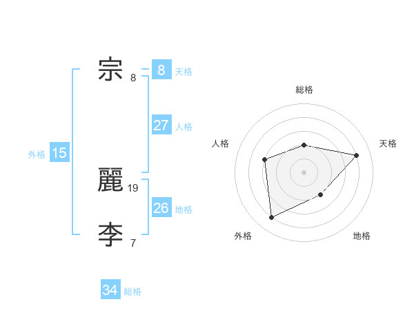 宗 麗李さんの総格は34画の2点!