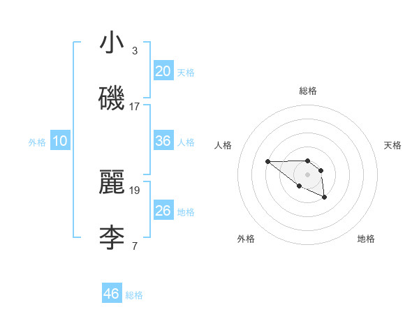 小磯 麗李さんの天格は20画の1点!