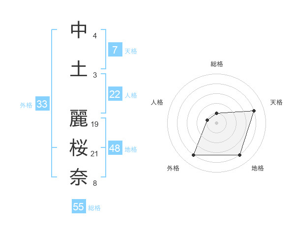 中土 麗桜奈さんを姓名の画数から五運を鑑定