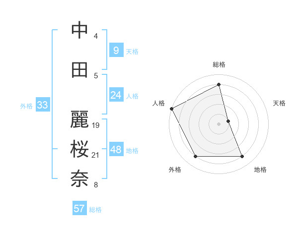 中田 麗桜奈さんを姓名の画数から五運を鑑定