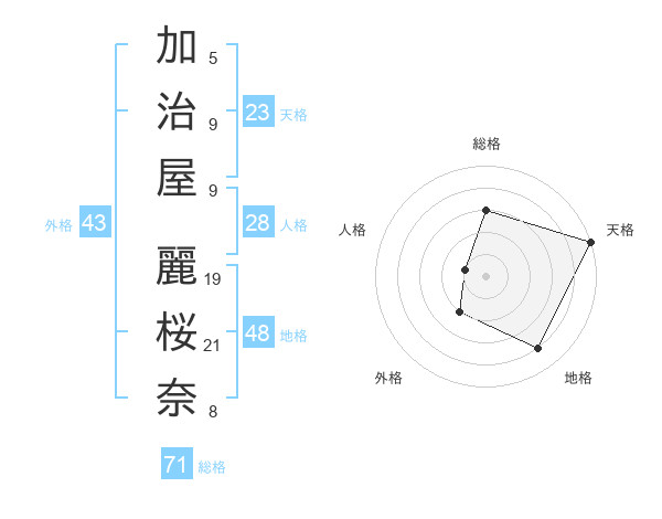加治屋 麗桜奈さんを姓名の画数から五運を鑑定