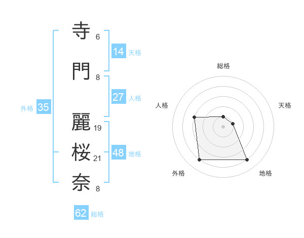 寺門 麗桜奈さんを姓名の画数から五運を鑑定