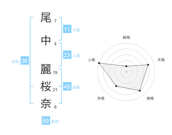 尾中 麗桜奈さんを姓名の画数から五運を鑑定