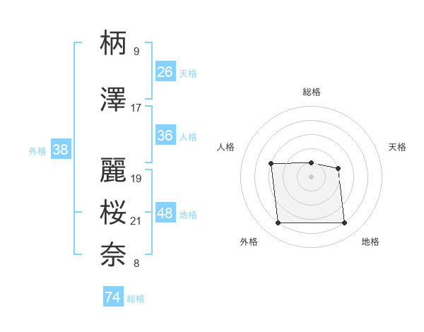 柄澤 麗桜奈さんの総格は74画の1点!