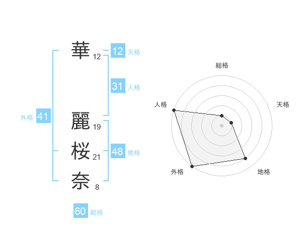 華 麗桜奈さんの外格は41画の5点!