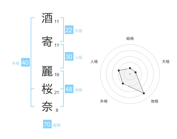 酒寄 麗桜奈さんを姓名の画数から五運を鑑定