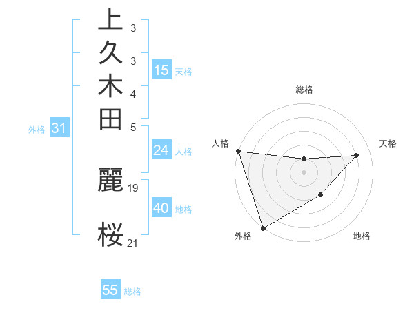 上久木田 麗桜さんを姓名の画数から五運を鑑定