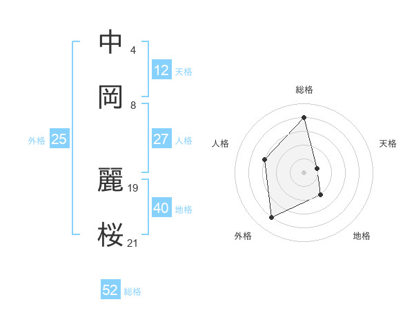 中岡 麗桜さんを姓名の画数から五運を鑑定