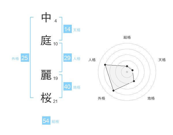 中庭 麗桜さんの総格は54画の1点!