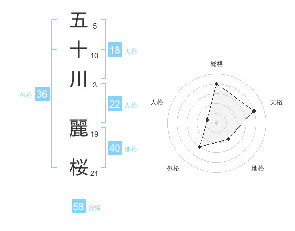 五十川 麗桜さんを姓名の画数から五運を鑑定