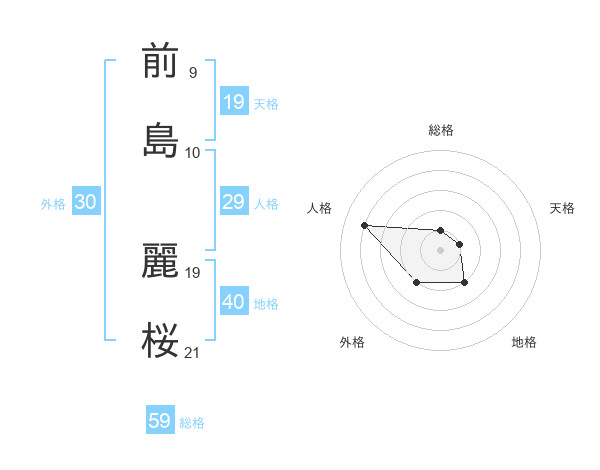 前島 麗桜さんを姓名の画数から五運を鑑定