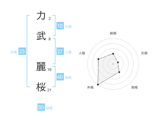 力武 麗桜さんの総格は50画の2点!