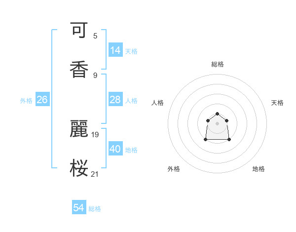 可香 麗桜さんの総格は54画の1点!