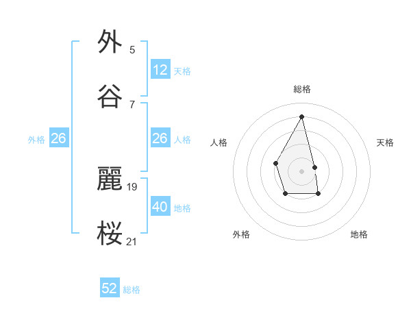 外谷 麗桜さんの総格は52画の4点!