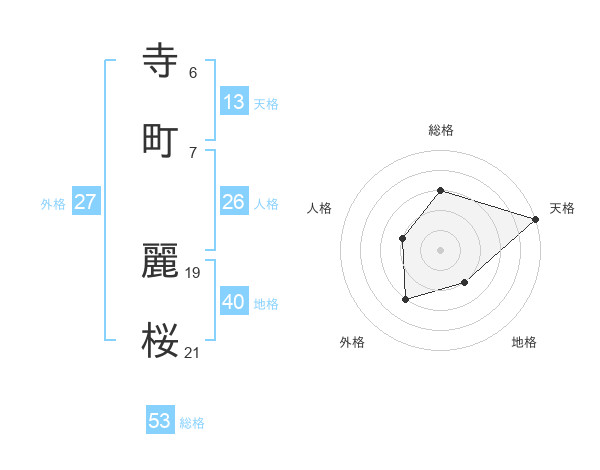 寺町 麗桜さんの総格は53画の3点!