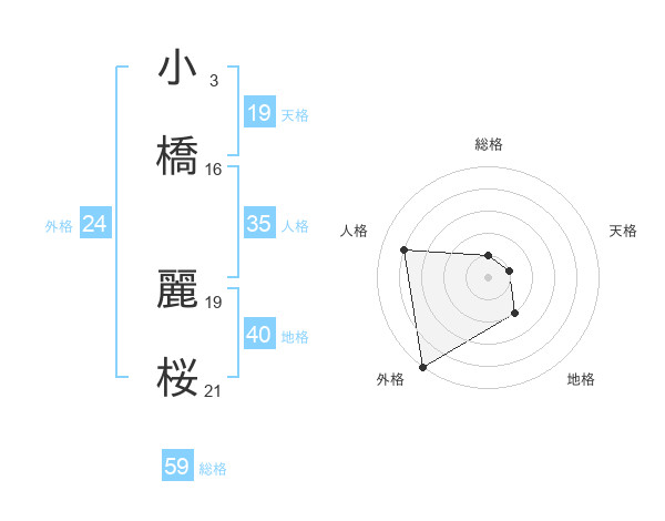 小橋 麗桜さんを姓名の画数から五運を鑑定