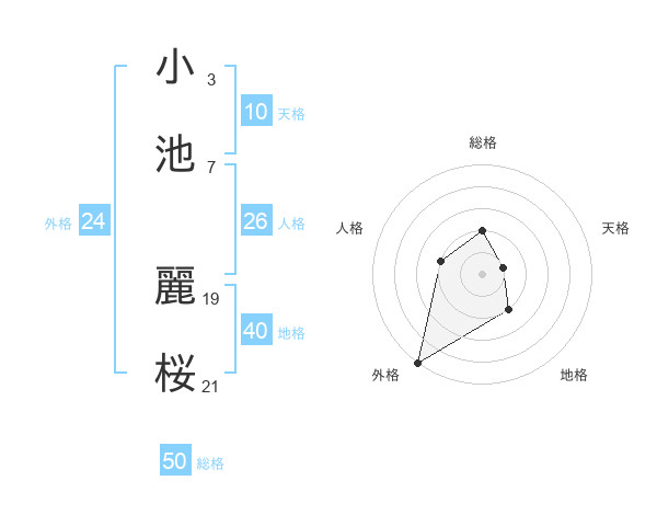 小池 麗桜さんを姓名の画数から五運を鑑定
