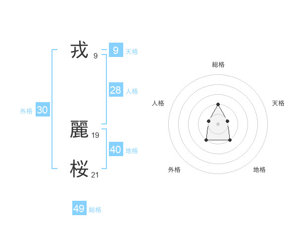 戎 麗桜さんの総格は49画の2点!