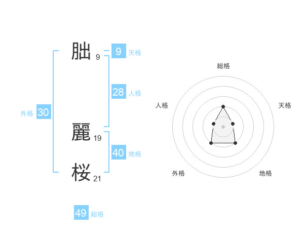 朏 麗桜さんの総格は49画の2点!
