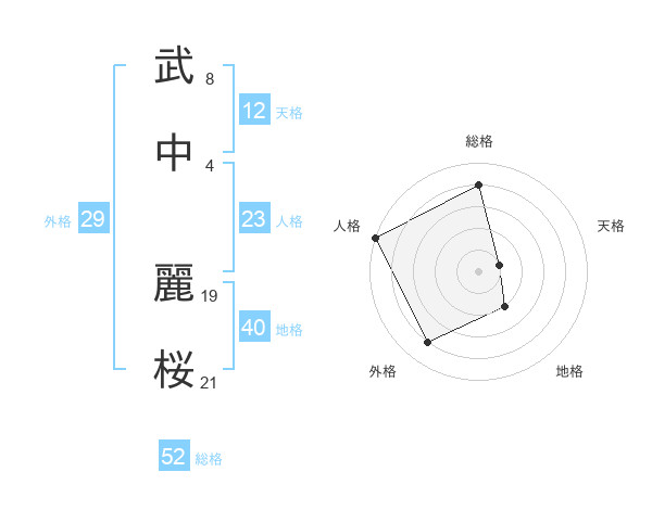 武中 麗桜さんの総格は52画の4点!