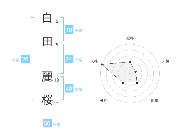 白田 麗桜さんを姓名の画数から五運を鑑定