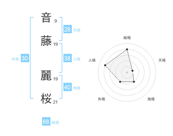音藤 麗桜さんを姓名の画数から五運を鑑定
