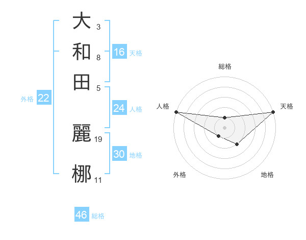 大和田 麗梛さんを姓名の画数から五運を鑑定