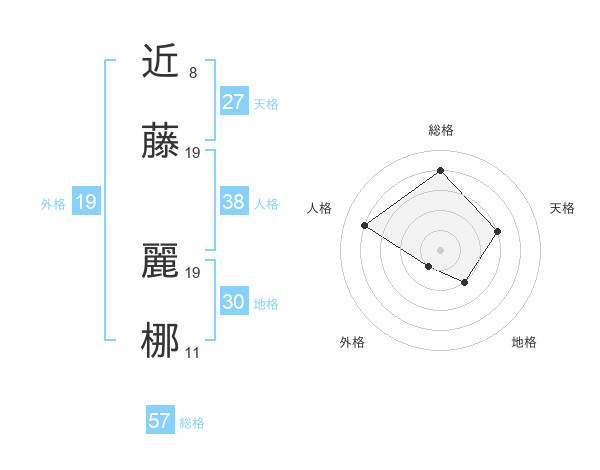 近藤 麗梛さんを姓名の画数から五運を鑑定